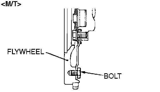 CAUTION: Do not remove the flywheel mounting bolt shown by the arrow. If this bolt is removed, the flywheel will become out of balance and damaged.