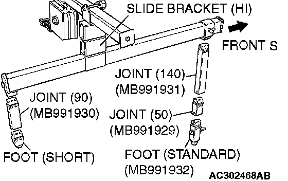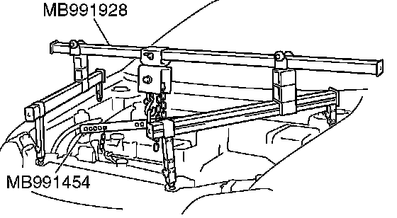 1. Assemble the engine hanger (special tool MB991928). Set following parts the base hanger.