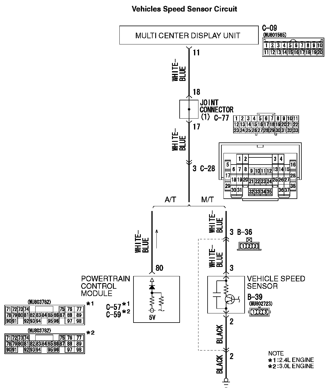 Q: Are multi-center display connector C-09 and vehicles speed sensor connector B-39
