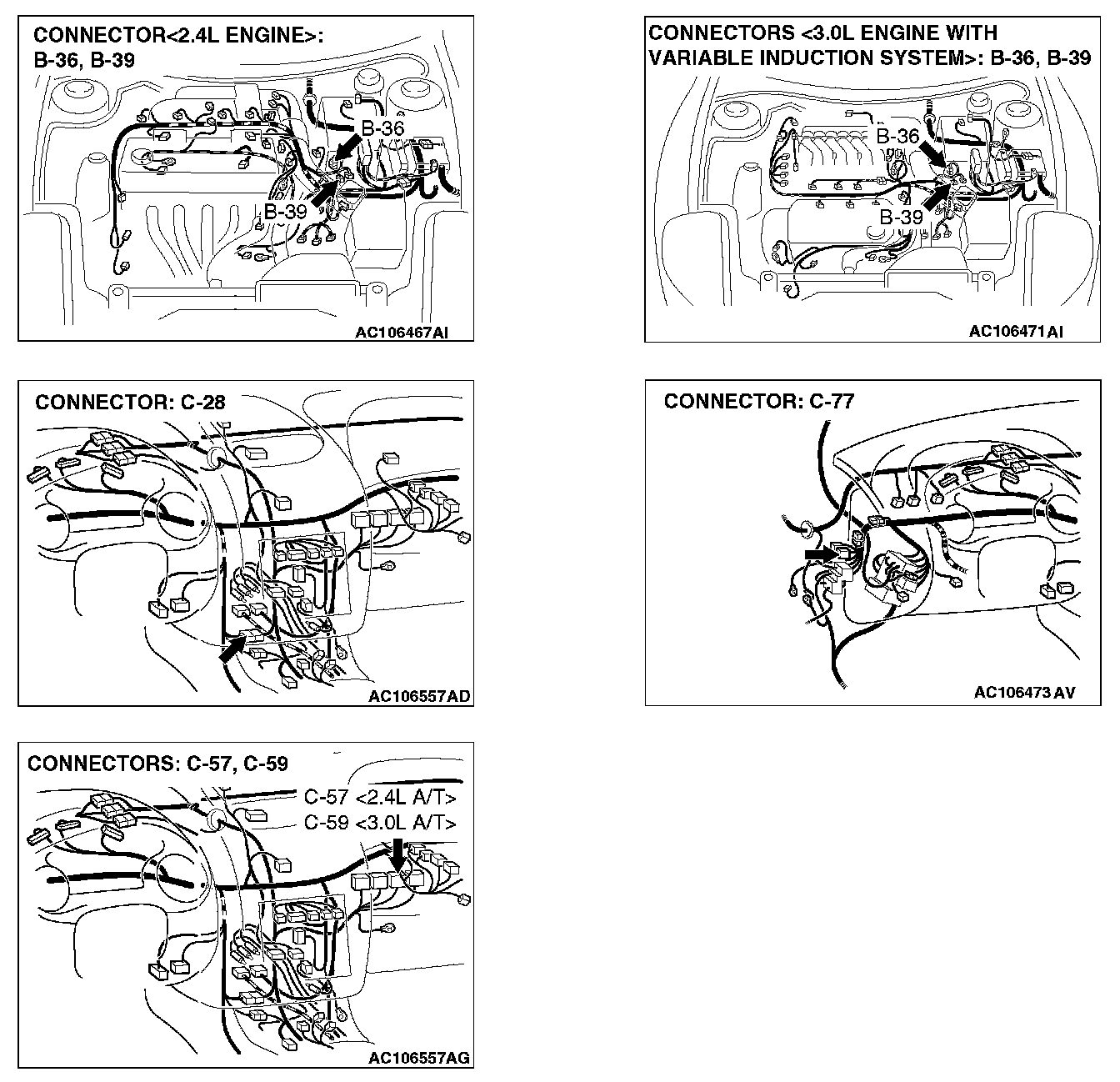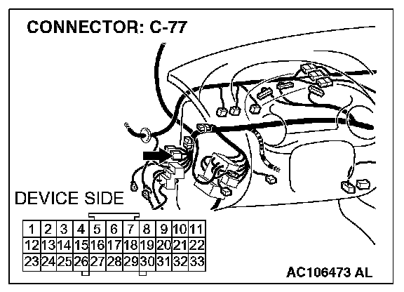NOTE: After checking intermediate connector B-36 and C-28, joint connector C-77, check the wires. If intermediate connector B-36 and C-28, joint connector C-77 are damaged, repair or replace the wiring harness. Refer to Harness Connector Inspection.