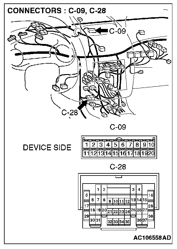 STEP 2. Check the connector between multi-center display connector C-09 and vehicles speed sensor connector B-39