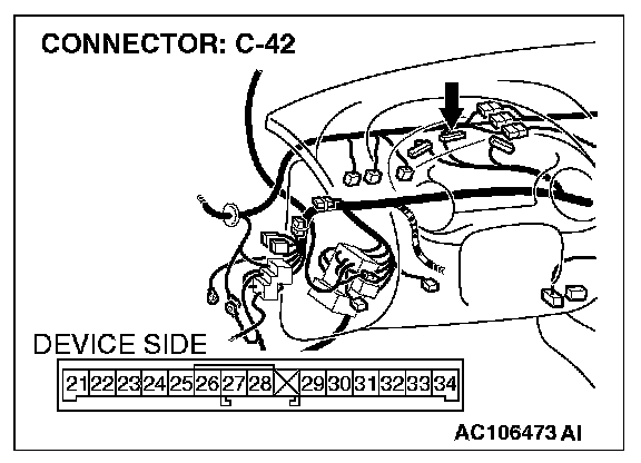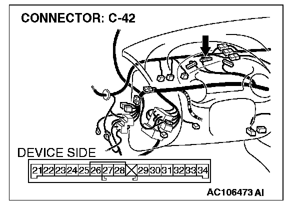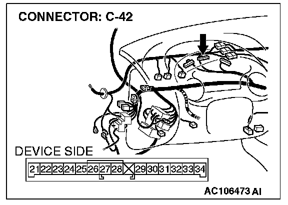 STEP 4. Check the combination meter connector C-42 for damage.