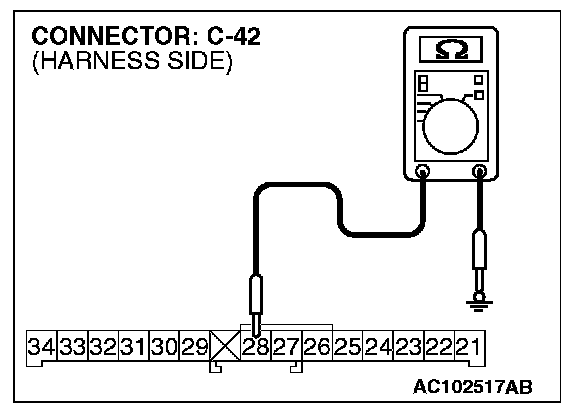 STEP 5. Check the wiring harness between combination meter connector C-42 (terminal 28) and ground.