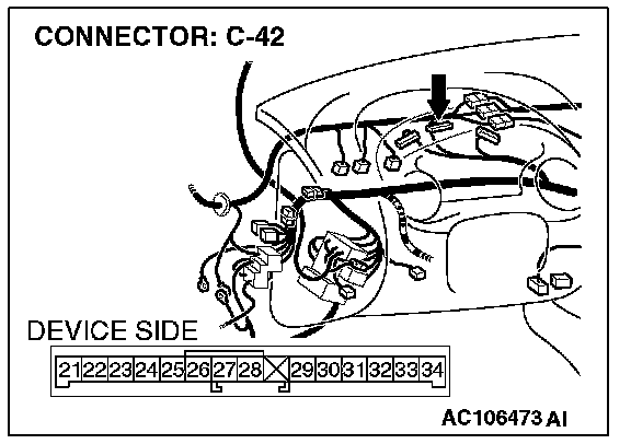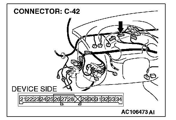 1. Disconnect the combination meter connector C-42.