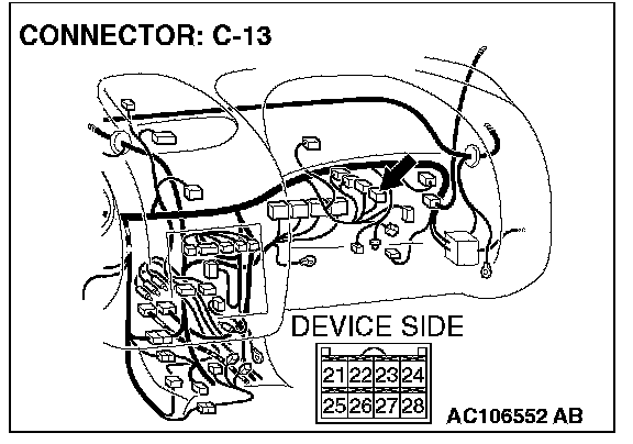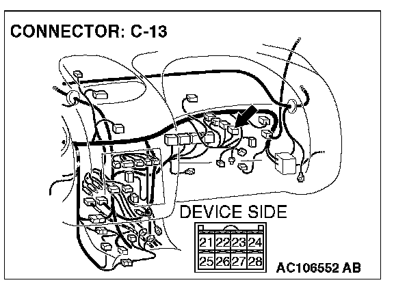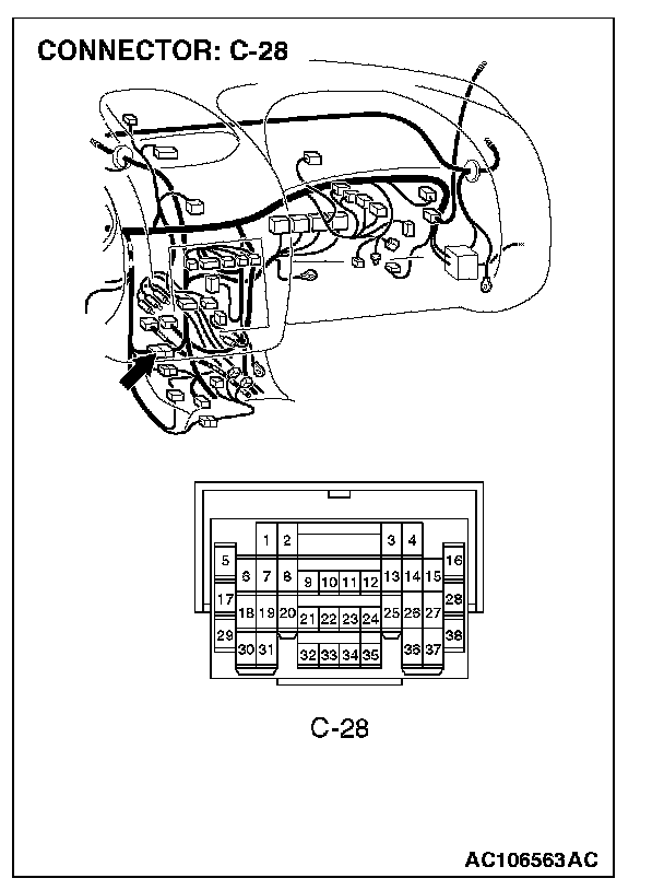 NOTE: After checking intermediate connector C-28, check the wires. If intermediate connector C-28 is damaged, repair or replace it. Refer to Harness Connector Inspection.