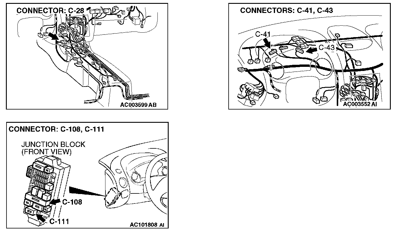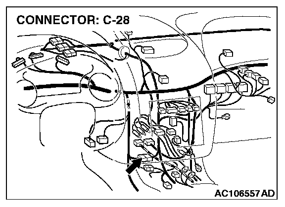 NOTE: After checking intermediate connector C-28, check the wire. If intermediate connector C-28 is damaged, repair or replace it. Refer to Harness Connector Inspection.