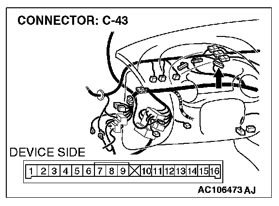STEP 3. Check the engine coolant temperature sensor connector B-08 and combination meter connector C-43 for damage.