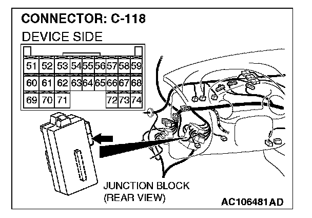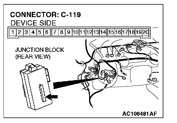 1. Disconnect ETACS-ECU connector C-119, and measure at the junction block side.