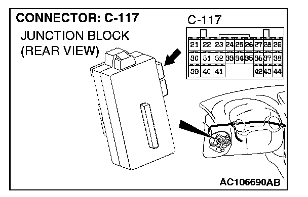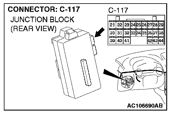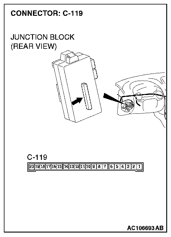 STEP 6. Check ETACS-ECU connector C-119 and front passenger's door lock actuator connector E-07 for damage.
