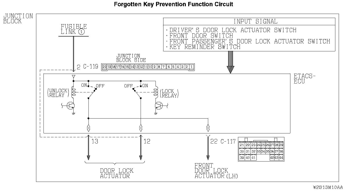 The ETACS-ECU operates the forgotten key prevention function according to the following switches: