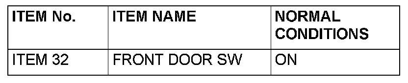 Q: The scan tool show the respective normal condition for item "FRONT DOOR SW."