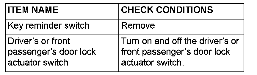 - Driver's or front passenger's door lock actuator switch: being turned on