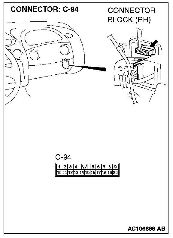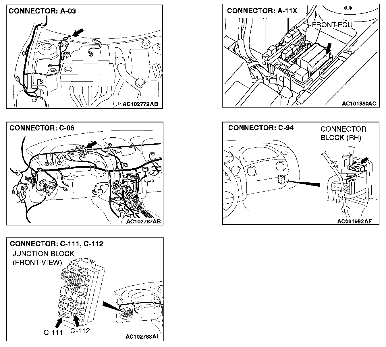 NOTE: Also check intermediate connector C-94, junction block connectors C-111 and C-112. If intermediate connectors C-94 or junction block connector C-111 or C-112 is damaged, repair or replace the connector as described in Harness Connector Inspection.