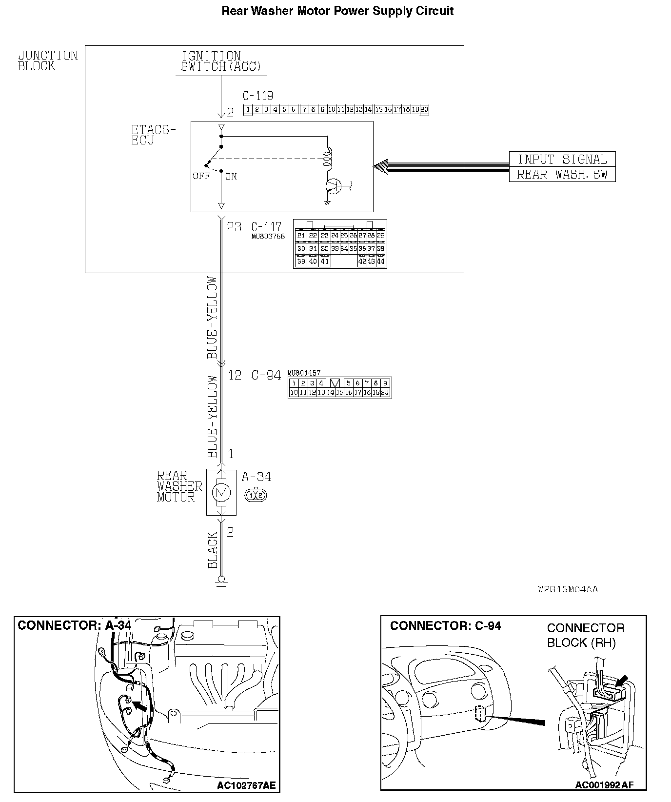 Rear Wiper and Washer: Rear Washer does not Operate.NOTE: This troubleshooting requires use of scan tool MB991958 and SWS monitor kit MB991862. For details of how to use the SWS monitor, refer to "How to use SWS monitor." How To Use SWS Monitor