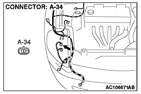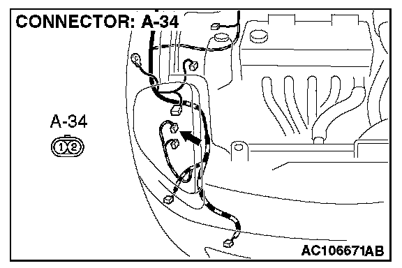 1. Disconnect rear washer motor connector A-34, and measure at the wiring harness side.