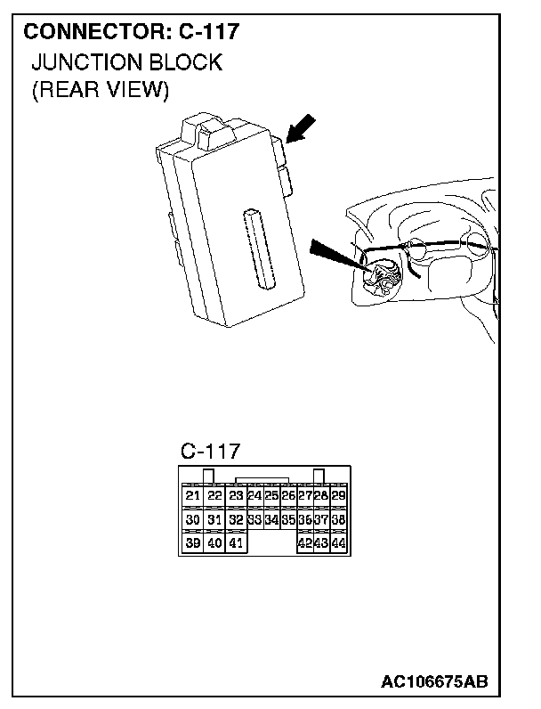 STEP 7. Check rear washer motor connector A-34 and ETACS-ECU connector C-117 for damage.