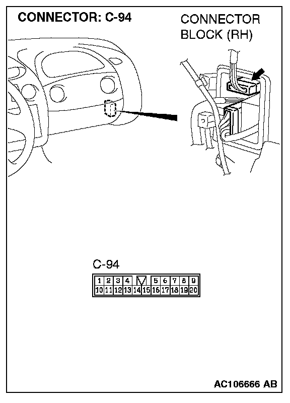 NOTE: Also check intermediate connector C-94. If intermediate connector C-94 is damaged, repair or replace the connector as described in Harness Connector Inspection.