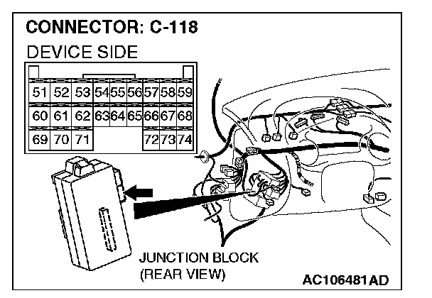 1. Disconnect ETACS-ECU connector C-118, and measure at the wiring harness side.