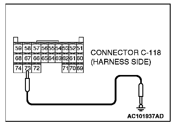 STEP 5. Check at ETACS-ECU connector C-118 in order to check the ground circuit to the seat belt warning light.