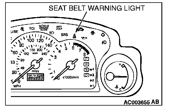 If the seat belt warning light does not illuminate, the input circuit, the combination meter (seat belt warning light bulb or printed-circuit board) or the ETACS-ECU may be defective.