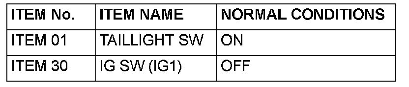 Q: Does the scan tool display the items "TAILLIGHT SW", "IG SW IG1", "FRONT DOOR SW" and "H/L AUTO-CUT" as normal condition?