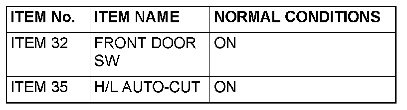 5. When the driver's door is opened, check that normal conditions are displayed on the items described in the given table.