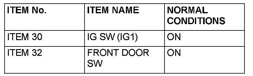 Q: Does the scan tool display the items "IG SW (IG1)" and "FRONT DOOR SW" as normal condition?