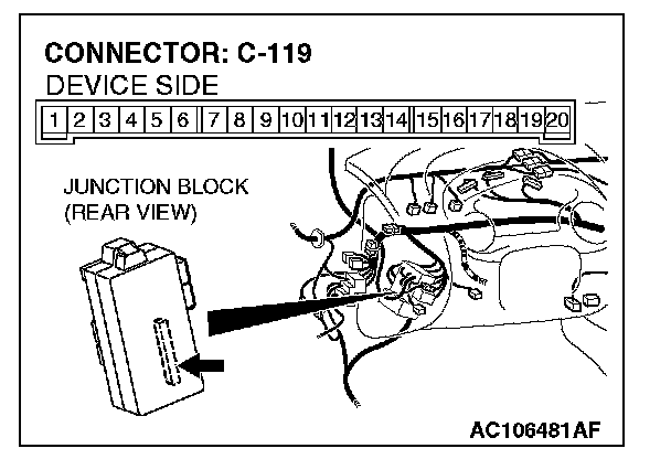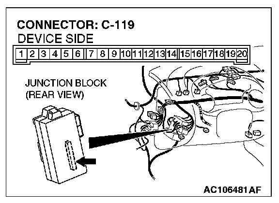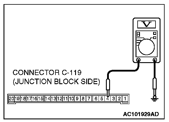 1. Disconnect ETACS-ECU connector C-119, and measure at the junction block side.