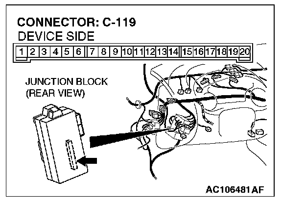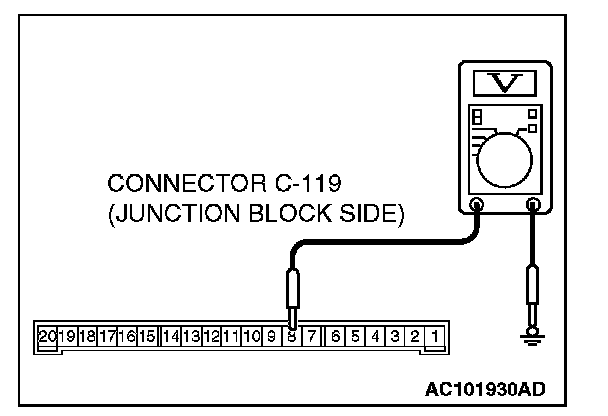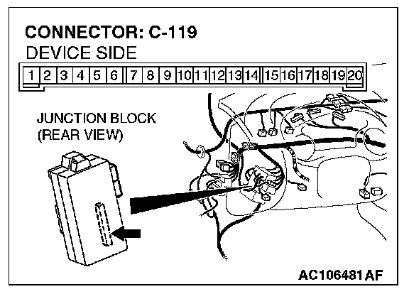 1. Disconnect ETACS-ECU connector C-119, and measure at the junction block side.