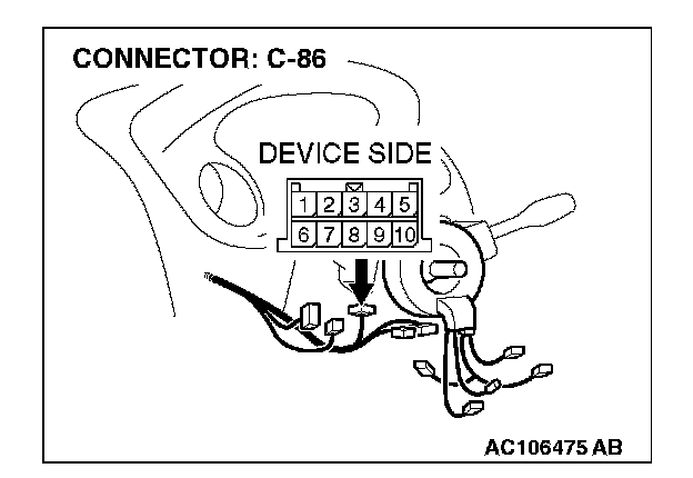 STEP 3. Check the wiring harness between column switch connector C-86 (terminal 6) and ETACS-ECU connector C-118 (terminal 66).