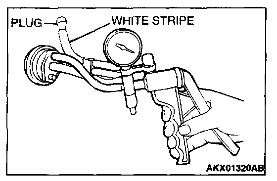 VACUUM CONTROL VALVE CHECK1. Disconnect the vacuum hose (white stripe) from the vacuum control valve and connect the hand vacuum pump to the vacuum control valve.
