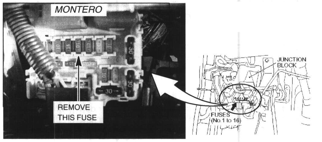 2. On Montero models, remove the red 10 amp fuse in the # 5 position. When I/M testing is complete, be sure to reinstall the fuse.