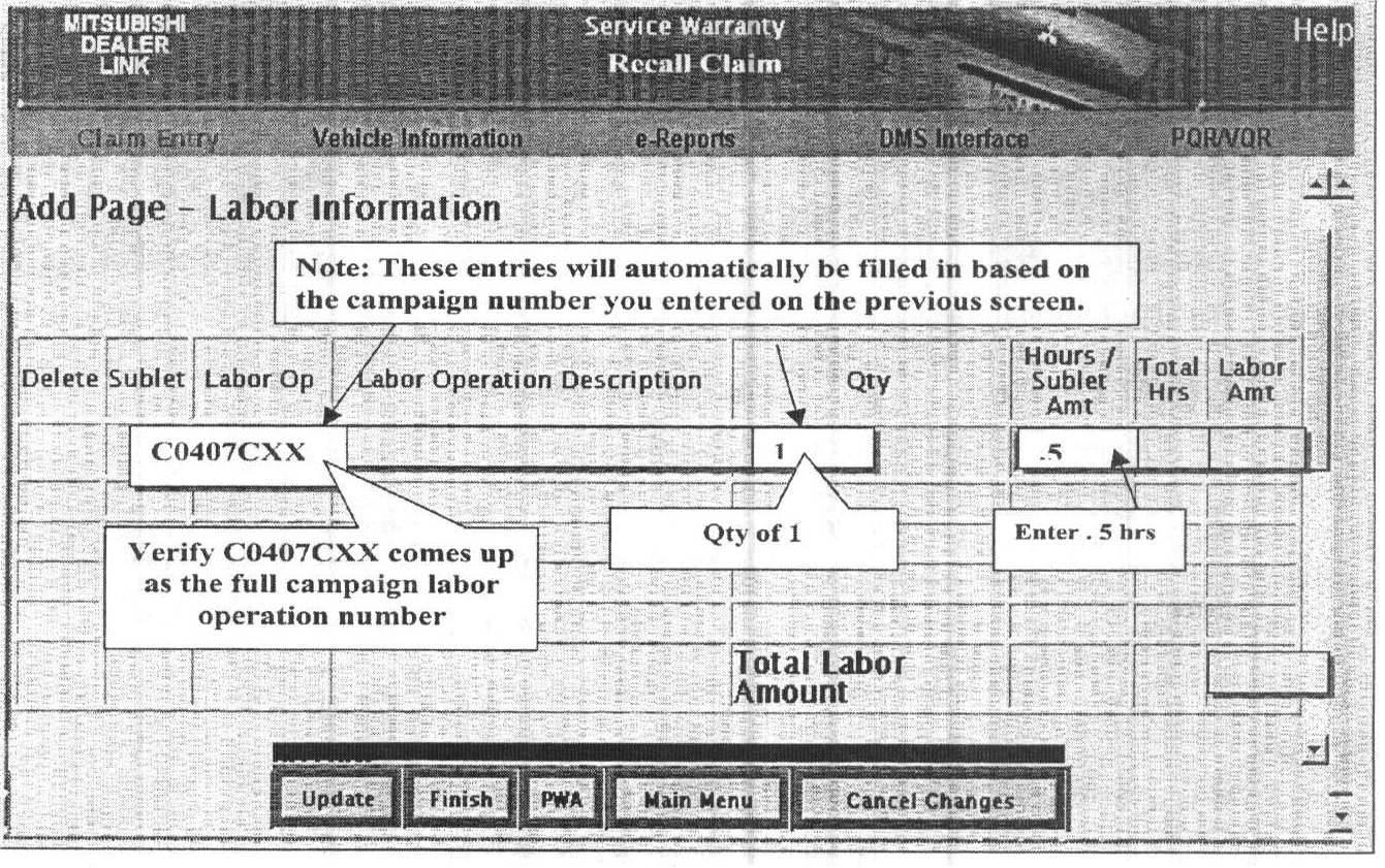 Use campaign labor operation C0407CXX