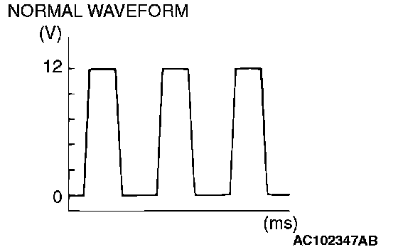 2) Connect an oscilloscope probe to PCM connector C-57 <2.4L Engine> or C-59 <3.0L Engine> terminal 80 by backprobing.