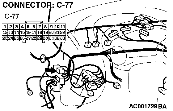STEP 5. Check PCM connector C-57 <2.4L Engine> or C-59 <3.0L Engine>, intermediate connector C-28, joint connector C-77 and combination meter connector C-42 for loose, corroded or damaged terminals, or terminals pushed back in the connector.
