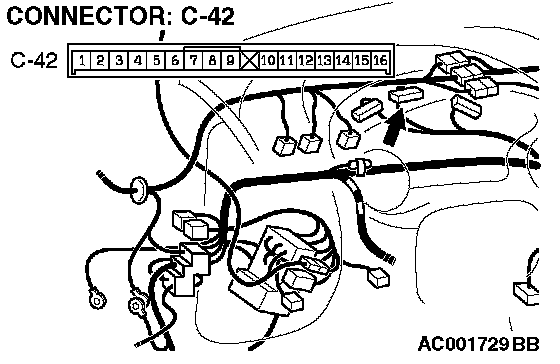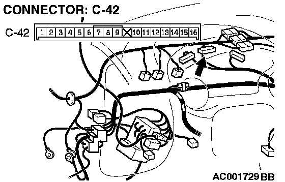 STEP 6. Check the harness for open circuit, short circuit to ground or damage between PCM connector C-57 <2.4L Engine> or C-59 <3.0L Engine> terminal 80 and combination meter connector C-42 terminal 30.