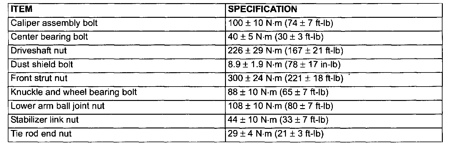 Fastener Tightening Specifications