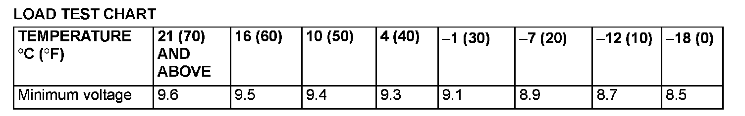 4. Compare the measured value with the minimum voltage. (See LOAD TEST CHART.)