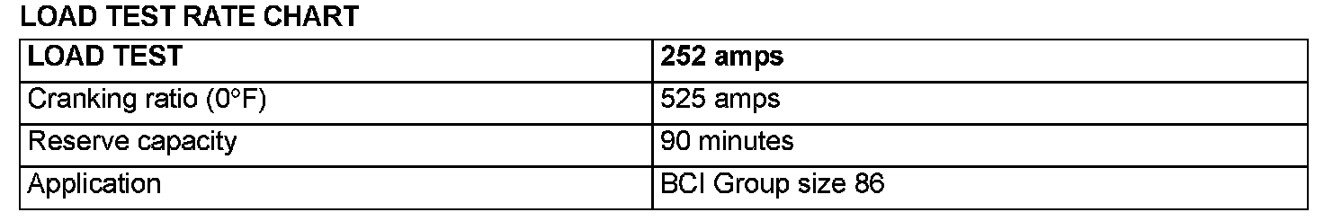 2. Load the battery at the recommended discharge rate (See LOAD TEST RATE CHART) for 15 seconds.