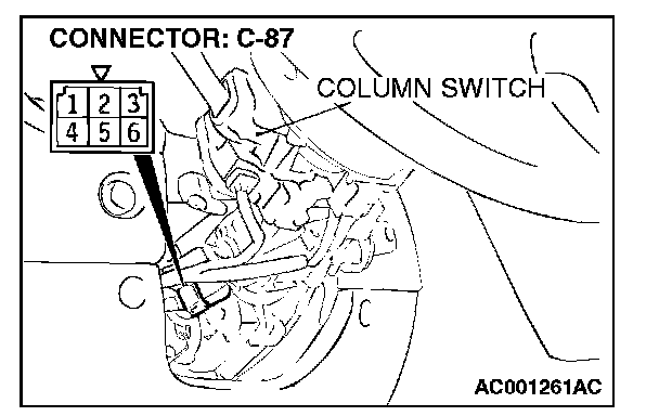 connector C-87 without removing the ignition switch and steering lock cylinder. Then check the continuity.