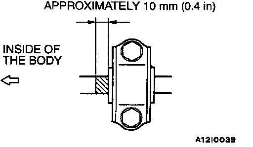 Position the stabilizer bar so that the left side identification mark is at the shown position, and tighten the stabilizer bar bracket mounting bolt.
