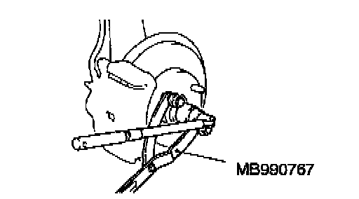 2. Use special tool MB990767 to fix the hub and tighten the driveshaft nut.