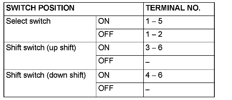 SHIFT SWITCH ASSEMBLY CONTINUITY CHECK