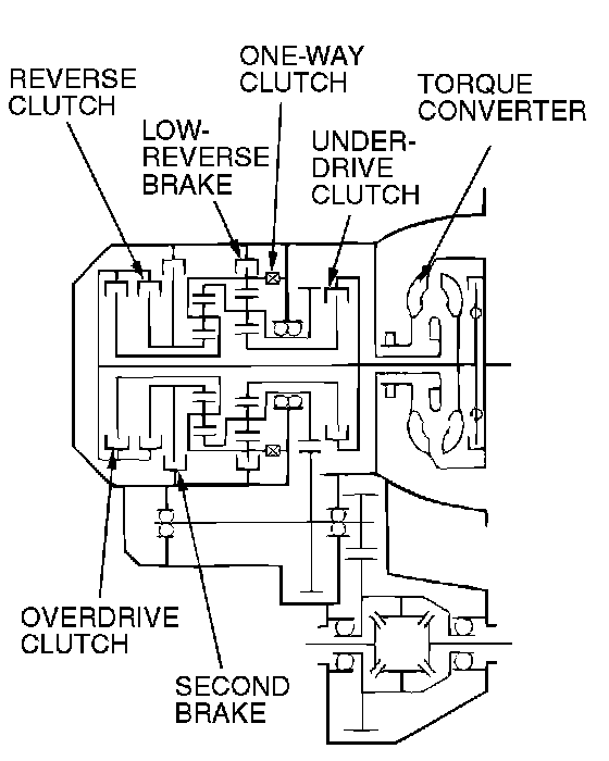 TORQUE CONVERTER STALL TESTThis test measures the maximum engine speed when the selector lever is at the "D" or "R" position and the torque converter stalls. This tests the operation of the torque converter, stator and one-way clutch operation, as well as the holding performance of the clutches and brakes in the transaxle.