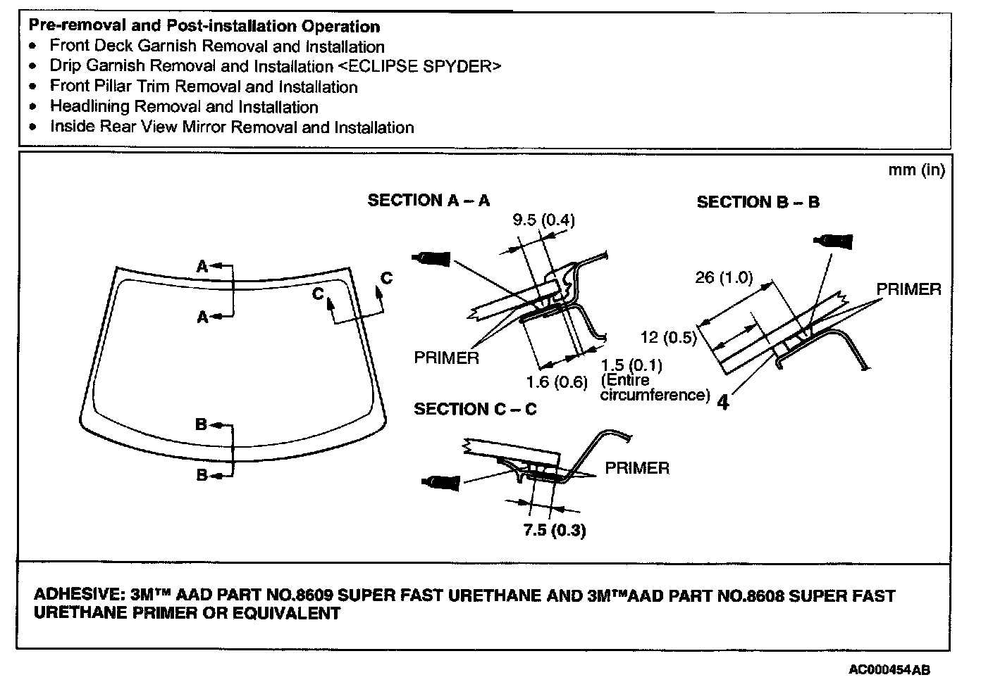 8. When reusing the windshield, remove the adhesive still adhering to the windshield, and clean with 3M(TM) AAD Part number 8906 or equivalent.