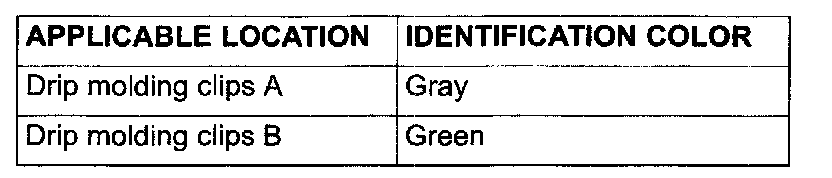 1. The drip molding clips A and B differ according to where they are used, so check the identification color before installation.