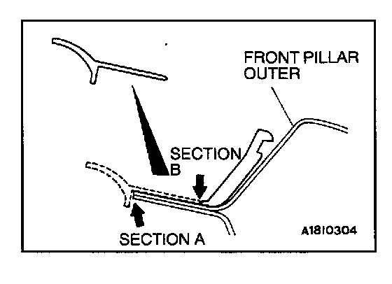 2. After installing the clip to outer front pillar in alignment with its section A, cut from section B.