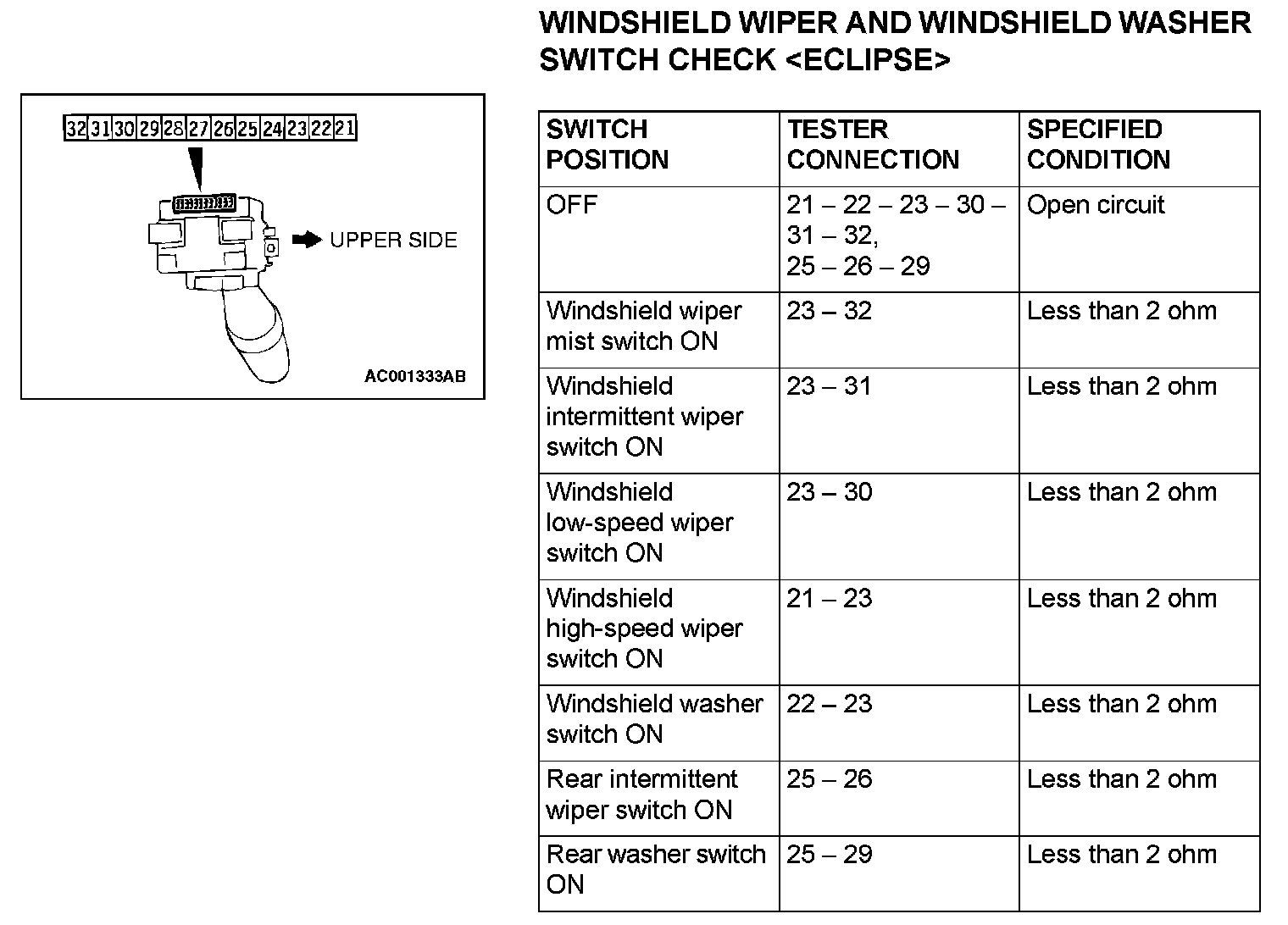 WINDSHIELD WIPER AND WINDSHIELD WASHER SWITCH CHECKWindshield Wiper And Windshield Washer Switch Check <Eclipse>: