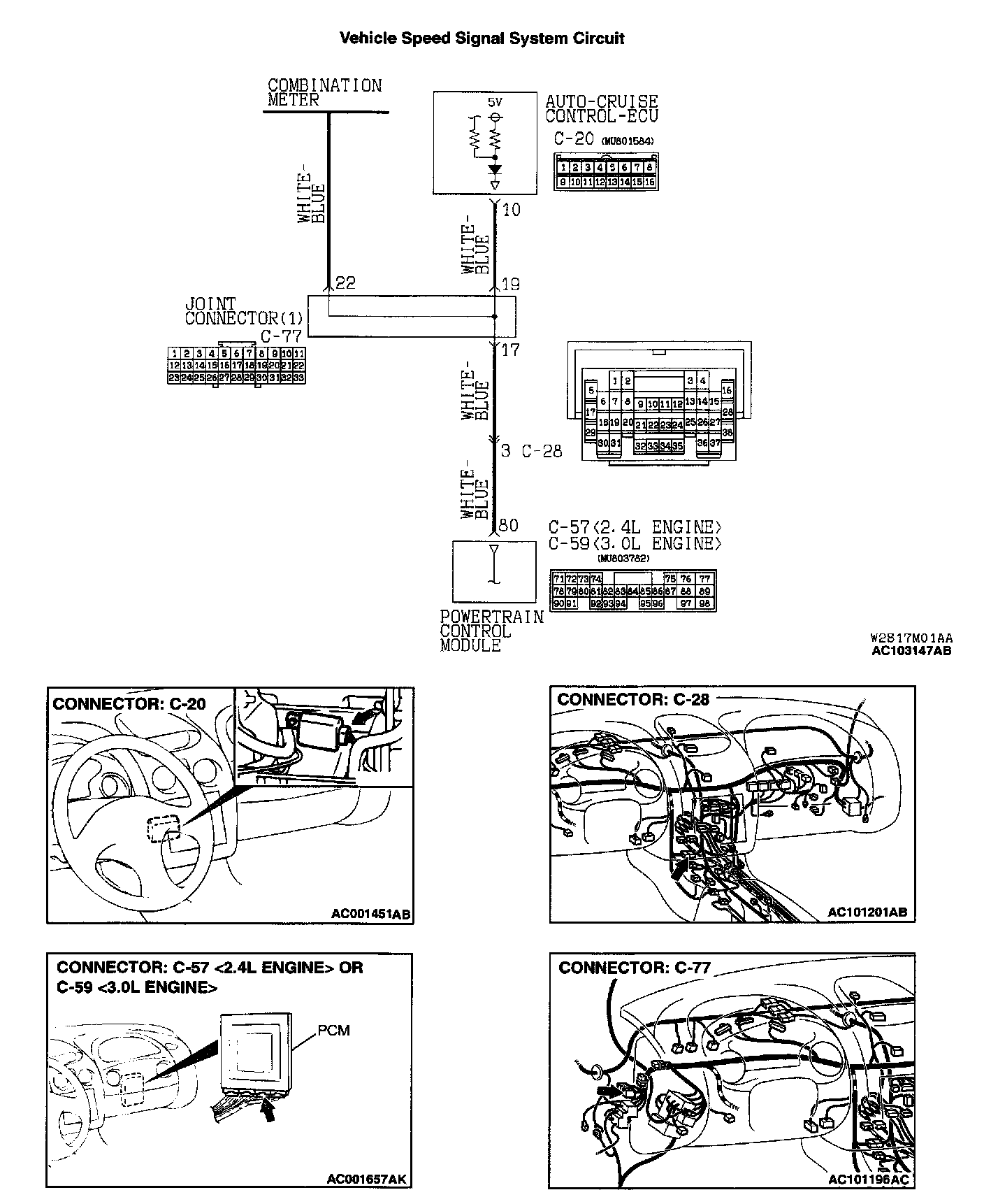 STEP 3. Check the harness wire between auto-cruise control-ECU connector C-20 (terminal number 10) and joint connector (1) C-77 (terminal number 19).