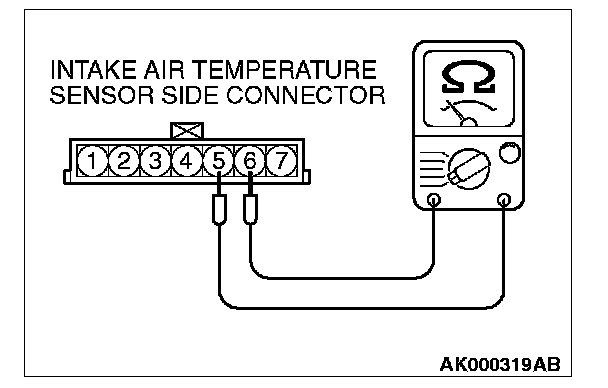 2. Measure the resistance between intake air temperature sensor side connector terminal 5 and 6.
